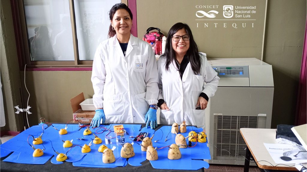 Las doctoras Lucía Barbosa y Oriana Barrios -también de Metalurgia Extractiva- con el fin de despertar el interés por la química, presentaron el experimento “Baterías con papas y limones” .